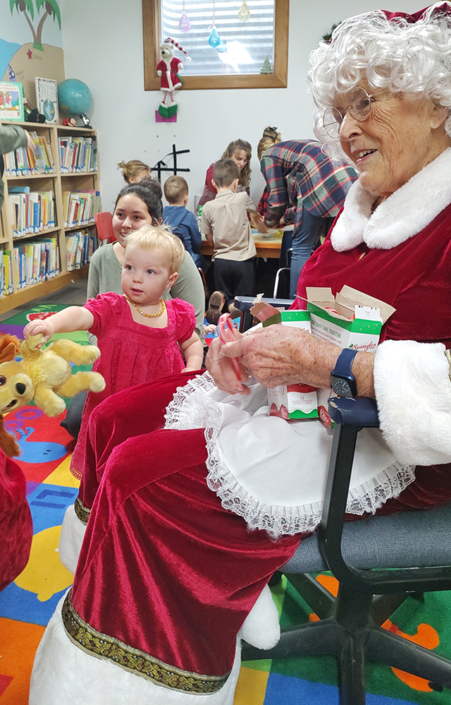 To the Library and Beyond Prairie Community Library, Inc. – Your nonprofit, all volunteer source! Happy New Year to all! Fund-raising volunteers are welcome; indeed, you are greatly encouraged! Bring your financial talents to the Annual meeting of the Board of Directors of Prairie Community Library, Inc. on Thursday 8 February at 10 AM in the Library. “Never doubt that a small group of thoughtful and committed citizens can change the world; indeed, it's the only thing that ever has.” Frances has reviewed the 2024 book, Rescuing the Warrior, by Kooskia, Idaho resident Roxanne Hicks. This volume is a New Addition to our Library collection, donated by Cindy and Emmett Wilson. Ms. Hick’s Christian romantic suspense unfolds a delightful tale about an ex-Marine and an elementary school-teacher. In their story, the couple meets by chance when the former military man, working as an Emergency Medical Technician in Washington State responds to a vehicle accident involving the young lady schoolteacher. Together they gradually learn that things they had been told about relatives and other people in their small town are not true; in fact, some well-respected citizens are involved in drug- and sex-trafficking. This page-turner sensitively includes exploration of topics like living with the scars of dysfunctional families and resistance to accepting higher powers of faith. Pat G. gives us three Thumbs-Up for The Girl With Spunk, a young-adult novel by Judith St. George about women’s rights; the young-adult Mysterious Benedict Trilogy, a page-turner by Trenton Lee Stewart; and A Place To Come Home To by Melody Carlson. Wednesday 31 December is New Year’s Eve; on New Year’s Day – as we begin this New Year we want to thank you for your many thoughtful contributions. We assure you that your donations are greatly appreciated as they provide for daily operations and support a growing fund for a brighter future. January is National Hobby Month. Thursday 1 January is designated as Copyright Law Day reminding us of the legal rights to intellectual property by those who create it. Friday 2 January is National Science Fiction Day, inviting us to read and write more science fiction stories. Saturday 3 January is the birthday of J.R.R. Tolkien. As the year ends, this volunteer will retire from Library service. The Library has added three new part-time volunteers this year, and each of them is another beautiful gem in the set of previously tried-and-true jewels: Emmett and Cindy Wilson, Colleen Wilson, Carissa Jones (and family!), Joan Brown, and Frances Conklin. I’ve had some fun, some trials, and a few victories. As an example of how closely these volunteers work together, Joan asked me to continue writing this column until the end of January – at which time you will begin enjoying the fine work of Frances Conklin. The volunteers who manage and operate Prairie Community Library aspire to a continual internal conversation among the all-volunteer staff regarding the organization’s direction and priorities. Send your volunteer message to cottonwoodlib@gmail.com. “Volunteering can provide job prospects.” Please recommend improvements to the Library’s direction, priorities and customer service. Thank you all! ![]() ![]() ![]() ![]() Santa and Mrs. Claus visited the library during Story Time on Dec. 16. | COTTONWOOD
