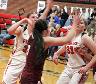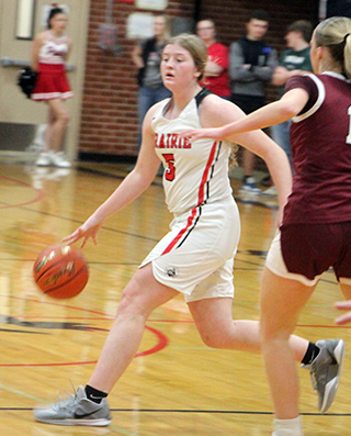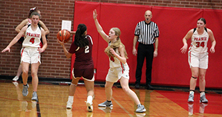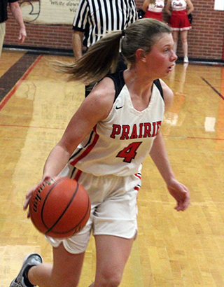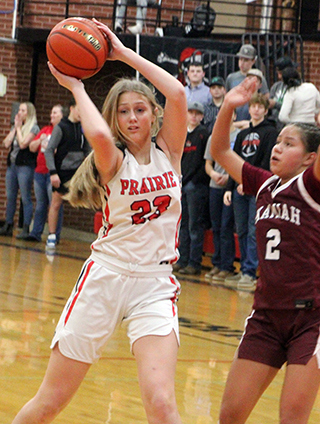 Dec. 22 due to the power outages and school closures.Prairie started the game with a 9-0 run. Kylie Schumacher opened the scoring with a lay-up. Elven followed with 2 free throws. A steal by Elven led to a basket by Hanson and Elven closed out the run with a 3. Potlatch got on the board with 2 free throws and a basket to pull within 5 then Prairie finished the first quarter with a 13-3 run. Elven converted a 3-point play. Kylie Schumacher scored a putback and was fouled. She missed the ensuing free throw but Elven rebounded and scored. Potlatch hit a 3-pointer then Beka Schumacher scored a putback and Elven scored twice after stealing the ball for a 22-7 lead at the end of the first quarter. Beka Schumacher started the second quarter with a lay-up. After a Potlatch basket Prairie went on a 12-0 run. Halee Rowland scored 2 baskets. Elven then scored twice and Kylie Schumacher scored twice to make it 36-9. Potlatch then scored 4 straight on 2 free throws and a lay-up. Kylie Schumacher scored the Potlatch scored the final 4 points of the half to make it 38-17 at the break. The third quarter started with a putback by Kylie Schumacher. Hanson followed with a 3. After a Potlatch basket, Prairie went on a 17 point scoring run. Elven started it with a lay-up. Hanson followed with a 3. Elven and Hanson each added a lay-up. Elven then added a lay-up and a 3 and Erica Schlader closed out the run with a 3. Potlatch broke the run with a free throw that ended the quarter. Prairie took a 60-20 lead into a running clock fourth. Only subs played the fourth quarter and still outscored Potlatch 7-3. Rowland started the scoring with a basket. Potlatch then hit a 3 for their only points of the quarter. Beka Schumacher scored on a bank shot, Faith Cash made a free throw and Rowland closed out the scoring with a putback. Elven wound up with a game high 27 points and added 9 rebounds, 4 steals and 4 assists. Kylie Schumacher scored 12 with a team-high 11 rebounds. Hanson scored 10 while Rowland scored 8, Beka Schumacher 6, Schlader 3 and Aubree Riener 1. Prairie outrebounded the Loggers 45-24. Beka Schumacher was also in double figures with 10 boards. Hanson and Shears each had 4 steals while Shears also had 4 assists. Prairie was 29 for 68 from the field, 43%, and 3 for 10 at the line, 30%. Potlatch was 7 for 33 from the field, 21%, and 6 for 10 at the line, 60%. Prairie is now 6-3 on the season and 3-1 in league play. Prairie 22 16 22 7 -67 Potlatch 7 10 3 3 -23 Prairie-Shears 0-7, 0-0, 0; Hanson 4-5, 0-0, 10; Schlader 1-1, 0-0, 3; Elven 10-16, 3-5, 27; K. Schumacher 6-15, 0-1, 12; B. Schumacher 3-10, 0-2, 6; Rowland 4-11, 0-2, 8; Brannan 0-3, 0-0, 0; Rehder 0-1, 0-0, 0; A. Riener 0-0, 1-2, 1; K. Riener 0-1, 0-0, 0; Behler 0-0, 0-0, 0; Cash 0-0, 0-0, 0. 3-pointers-Hanson 2, Elven 2, Schlader. Potlatch-Winther 1-4, 0-0, 2; Vowels 1-6, 1-2, 4; Larson 0-5, 1-2, 1; Linus 0-2, 0-0, 0; Fry 3-7, 3-4, 9; Carlson 0-1, 0-0, 0; Hansen 2-5, 1-2, 7; Stoor 0-0, 0-0, 0; Sawyer 0-0, 0-0, 0. 3-pointers-Hansen 2, Vowels. ![]()