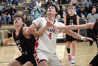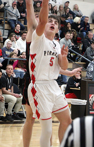 Schlader scored twice to open the second quarter and put Prairie up 16-5. After a basket by Murtaugh, Nate Forsmann made a pair of throws. Shears added a free throw and Schlader added 2 more for a 21-7 lead. After another Murtaugh basket, Forsmann scored a free throw to make it 22-9 with 2:30 left in the half. Neither team scored in the final 2:30 leaving that as the halftime score. Prairie had outscored Murtaugh 10-4 in the quarter with each team making 2 baskets. The difference was a 6 for 9 performance at the line by the Pirates. Murtaugh was just 3 for 25 from the field in the first half, 12%. Prairie wasn’t a whole lot better at 5 for 20, 25%. Prairie opened the third quarter with a 7-2 run, increasing their lead to 18 at 29-11. Forsmann scored a free throw followed by a lay-up by Schlader. After a Murtaugh basket, Shears made a free throw and Schlader hit a 3. Murtaugh then countered with a 1-7 run of their own to get back within 12 at 30-18. Forsmann had the only point for Prairie in that nearly 3 minute span. The Pirates then closed out their third quarter with a 10-0 run to take a 40-18 lead into the fourth quarter. Forsmann made 3 of 4 at the line and then scored a lay-up to make it 35-18. Shears was then able to break loose in transition for a dunk. Levi Gehring was then fouled on a 3-point attempt in the final seconds of the quarter and made all 3 free throws. Murtaugh scored 4 straight to open the fourth quarter then Schwartz sank a 3 from the corner. After 2 more baskets by Murtaugh cut the lead to 43-26, Prairie got a lay-up from Gehring and then a free throw each from Forsmann and Shears that made it 47-26. Prairie sent in the second unit for the final 3 minutes and after a Murtaugh free throw, Kade Quintal hit a 3. Murtaugh then scored 9 straight points before a free throw by Quintal and a put back by Sam Rehder closed out the scoring. Schlader and Forsmann each had double-doubles in the game. Schlader led the team in points with 14 and had 13 rebounds. Forsmann had 11 points and led in rebounds with 14. Shears had 13 points while Gehring had 5. Schwartz and Quintal had 4 each and Sam Rehder had 2. Prairie dominated the boards 50-28. Forsmann had 2 steals and Schwartz, Chase VonBargen, Shears and Gehring each had 2 assists. Schlader and Max Rehder each had 2 blocked shots. Prairie was 13 for 42 from the field, 31%, and 22 for 33 at the line, 67%. Murtaugh was 10 for 53 from the field, 19%, and 12 for 21 at the line, 57%. Prairie 12 10 18 13 -53 Murtaugh 5 4 9 18 -36 Prairie-Gehring 1-4, 3-3, 5; Shears 3-8, 6-10, 13; Schwartz 1-6, 1-2, 4; Schlader 5-8, 2-3, 14; Forsmann 1-4, 9-14, 11; VonBargen 0-2, 0-0, 0; M. Rehder 0-1, 0-0, 0; Quintal 1-2, 1-2, 4; Armbrust 0-1, 0-0, 0; Enneking 0-1, 0-0, 0; Riener 0-1, 0-0, 0; S. Rehder 1-4, 0-0, 2. 3-pointers-Schlader 2, Shears, Schwartz, Quintal. Murtaugh-Widmier 3-12, 7-11, 14; M. Jensen 4-6, 1-3, 10; Aguilar 0-5, 0-0, 0; P. Stanger 0-2, 0-0, 0; Gray 2-7, 0-0, 4; Alcala 0-0, 0-0, 0; J. Stanger 0-7, 1-2, 1; Jones 0-1, 0-0, 0; Gil 0-5, 1-2, 1; Andersen 0-5, 2-2, 2; Hunsaker 0-1, 0-0 0; Roseborough 1-1, 0-1, 2; DeLeon 0-1, 2-2, 2; Medina 0-0, 0-0, 0; T. Jensen 0-0, 0-0, 0. 3-pointers-Widmier, M. Jensen. Vs. Lakeside