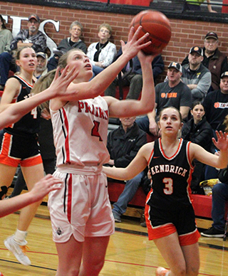 first quarter.Kendrick scored to open the second then Prairie scored 6 straight for a 22-9 lead. Kendrick then closed the first half with 7 straight points to make it 22-16 at the break. Prairie came out in the second half with 9 straight points to take a 15 point lead. Kylie Schumacher scored a lay-up then converted a 3-point play. Elven scored a lay-up then Kylie added a lay-up to finish the run. Kendrick’s first points of the second half came at the 3:46 mark. Shears banked a short shot in to answer. Another Kendrick score was answered by Kylie Schumacher. Kendrick scored again at the 1:57 mark then went scoreless for over 7 minutes. In that span Prairie scored 18 straight points to blow the game open and invoke the running clock. Prairie ended the third quarter with 6 straight as Kylie Schumacher, Beka Schumacher and Elven each scored a basket for a 41-21 lead. Shears scored to open the fourth quarter. Beka Schumacher converted a 3-point play. Shears hit a 3-pointer and then added a lay-up that gave Prairie a 30-point lead and turned on the running clock with 3:36 to play. Kylie Schumacher capped the run with a lay-up. Kendrick scored their only points of the fourth quarter on a 3 with 2:25 left. Prairie then got a basket each from Halee Rowland and Reagan Brannan. Kylie Schumacher had another double-double with 25 points and 13 rebounds. Shears was also in double figures with 11 points. Elven scored 9 while Beka Schumacher scored 6. Hanson, Rowland and Brannan scored 2 each. Prairie dominated the boards 55-19. Elven tied for the team lead with 13 rebounds while Beka Schumacher was also in double figures with 10. Kylie Schumacher had 4 steals and 4 assists. Hanson, Elven and Schlader each had 3 assists. Prairie was 26 for 66 from the field, 39%, and 3 for 12 at the line, 25%. Kendrick was 9 for 40 from the field, 23%, and 3 for 4 at the line, 75%. Prairie is now 11-4 on the season and 8-1 in league play. If they wind up tied for first with Lapwai, Prairie has the tiebreaker and will be the #1 seed into District. Prairie also won the JV game, which went just 2 quarters, 41-5. Prairie scored the first 17 points of the game. 10 of those were by Kennedy Riener. Faith Cash scored 4, Lillian Rehder 2 and Reagan Brannan 1. Kendrick scored their first points at the 1:19 mark. Alli Rambo then scored a pair of baskets to make it 21-2 at the end of the first quarter. Prairie then scored the first 8 points of the second quarter. Capri Hagen started the scoring. Kenly Forsmann followed with a midrange shot. Blake Uhlenkott scored a free throw. Hagen scored a free throw then Bekah Shears made a basket on an inbounds play. Hagen scored again to make it 31-2. Kendrick scored the Prairie ran off another 6 straight. Rambo, Hagen and Tori Shears each scored to make it 37-4. After a Kendrick free throw, Zoey Behler scored a pair of baskets to finish off the game. Riener led the scoring with 10 points. Hagen scored 7, Rambo 6, Behler and Cash 4 each, Rehder, Forsmann, Bekah Shears and Tori Shears 2 each and Brannan and Uhlenkott 1 each. Prairie had a 12-5 edge on the boards. Brannan led Prairie with 4 rebounds. Kennedy Riener had 4 steals while Tori Shears and Brannan had 3 each. Uhlenkott had 5 assists. Prairie was 18 for 29 from the field, 62%, and 5 for 10 at the line, 50%. Kendrick was 2 for 5 from the field, 40%, and 1 for 2 at the line, 50%. They only put up 5 shots because they committed 29 turnovers in 16 minutes of play. Prairie 16 6 19 16 -57 Kendrick 7 9 5 3 -24 Prairie-Shears 5-14, 0-0, 11; Hanson 1-5, 0-0, 2; Schlader 0-1, 0-0, 0; Elven 4-14, 0-0, 9; K. Schumacher 12-17, 1-7, 25; B. Schumacher 2-8, 2-4, 6; Rowland 1-3, 0-0, 2; Brannan 1-2, 0-0, 2; Rehder 0-0, 0-0, 0; Cash 0-1, 0-0, 0; K. Riener 0-0, 0-0, 0; Behler 0-0, 0-0, 0; A. Riener 0-1, 0-0, 0. 3-pointers-Elven, Shears. Kendrick-Heimgartner 1-9, 0-0, 3; Cowley 0-4, 0-0, 0; Anderson 4-9, 1-2, 10; Clemenhagen 0-0, 0-0, 0; Boyer 3-10, 0-0, 6; Hoffman 0-6, 2-2, 2; Johnstun 1-2, 0-0, 3; Manfull 0-0, 0-0, 0. 3-pointers-Anderson, Johnstun. ![]() Kylie Schumacher scores a lay-up against Kendrick. ![]() Reagan Brannan plays defense against Kendrick's Hali Anderson. ![]() Sage Elven shoots from the corner against Kendrick. Also shown is Sydney Shears. ![]() Sydney Shears goes for a lay-up against Kendrick. PIRATES GIRLS BASKETBALL SCHEDULE FOR 2025-26