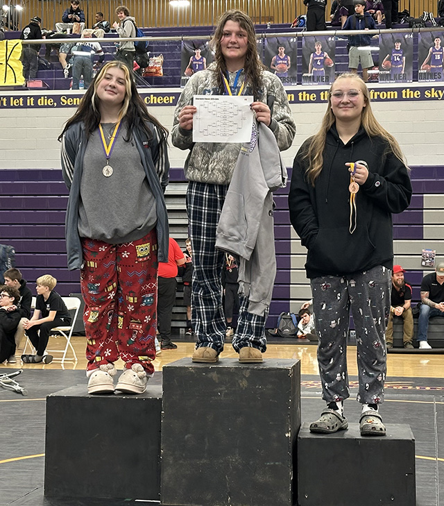 Avery Schacher, middle, won her weight class at the Clearwater Classic