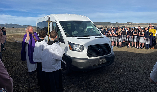 Paul blessed the van after a school Mass, asking God's protection on