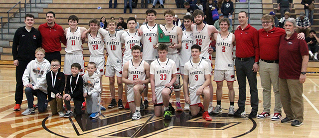 with the State Tournament third place trophy after beating North Star